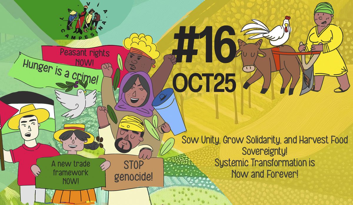 Bagnolet: October 16 , International Day of Action for People’s Food Sovereignty, and against Transnational Corporations, at a time when humanity faces a profound systemic crisis, we at La Via Campesina — uniting peasants, rural communities, small-scale farmers, Indigenous Peoples, pastoralists, migrant workers, women, youth, and diverse rural identities — we maintain our conviction that the values of Food Sovereignty are essential for the change we need.